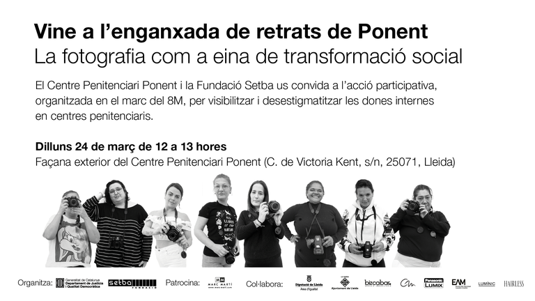 - 📍 Al mur exterior del Centre Penitenciari de Ponent | C. de Victoria Kent, s/n 25071 LLEIDA |👉 Creació d’un mural fotogràfic amb els retrats realitzats per les dones internes del Centre Penitenciari de Ponent, en el marc del 8M, per desestigmatitzar i visibilitzar les dones internes en centres penitenciaris. | 👉 La iniciativa forma part del projecte fotogràfic Traspassant l’objectiu, que per segon cop s’ha dut a terme al Centre Penitenciari de Ponent. L’acció dóna veu a les dones internes a través de la fotografia, una eina poderosa per combatre l’estigmatització que sovint pateixen i la triple condemna a la qual sovint s’enfronten: la penal, la social i la personal. Aquest any, el projecte ha estat dirigit per la fotògrafa lleidatana Iolanda Sebé.