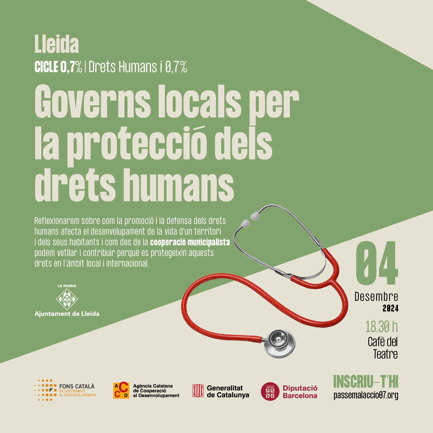 Acte de sensibilització en format taula rodona i emmarcada en la campanya “No va només de posar-nos d’acord. Passem a l’acció: el percentatge per la justícia global”. La campanya, a nivell de tota Catalunya i del Fons Català de Cooperació al Desenvolupament, vol reivindicar l'acompliment del 0,7% en polítiques de cooperació al desenvolupament, sensibilitzant la ciutadania i promovent que els ajuntaments destinin aquest percentatge.