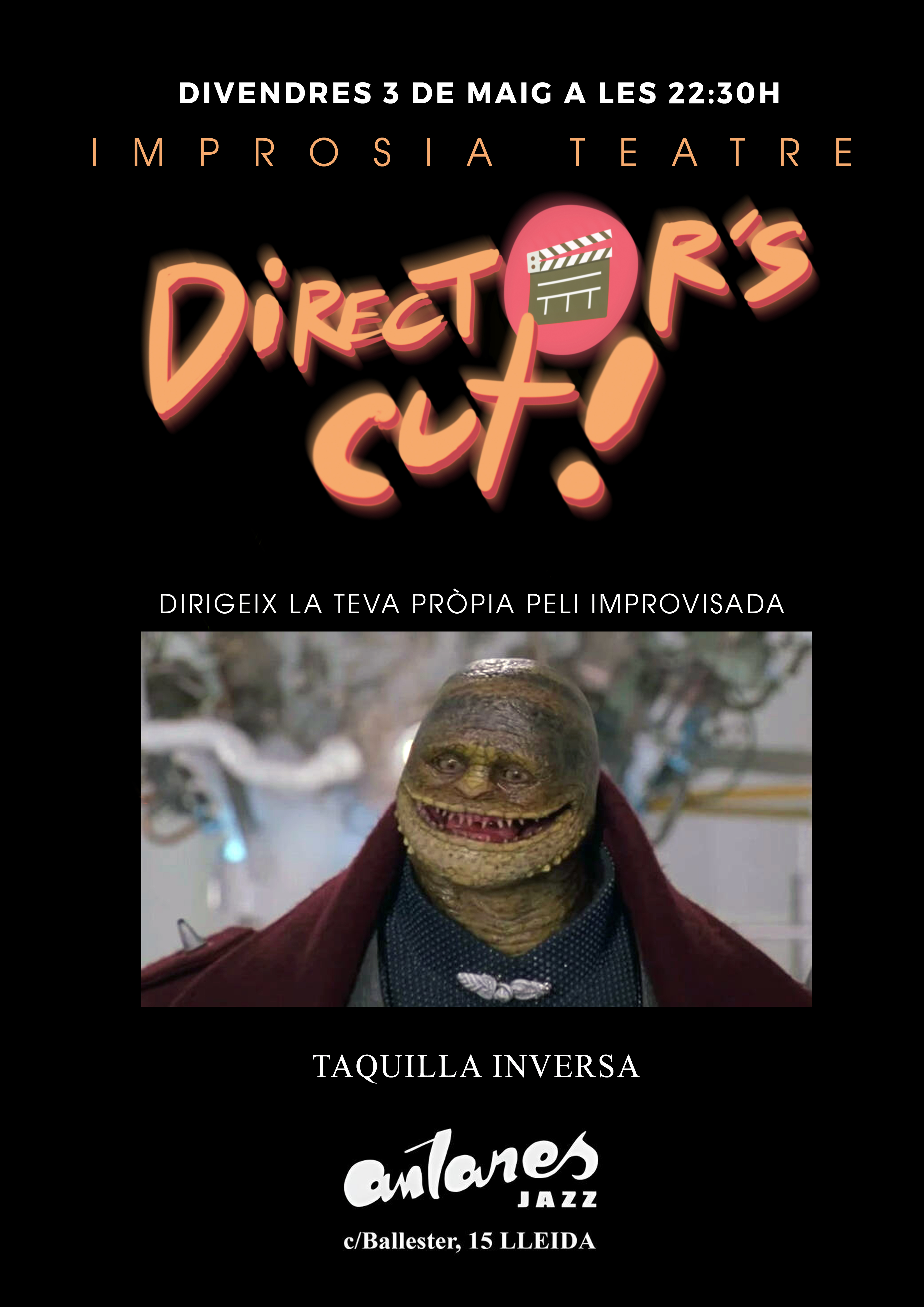 La companyia teatral Improsia Teatre torna a portar una nova edició del seu espectacle d'improvisació Director's Cut on el públic no només participa amb les clàssiques aportacions d'idees sino que surgirán diferents directors i directores de les escenes de l'espectacle. Vine a gaudir d'aquest espectacle d'humor i dirigeix-lo si t'atreveixes!