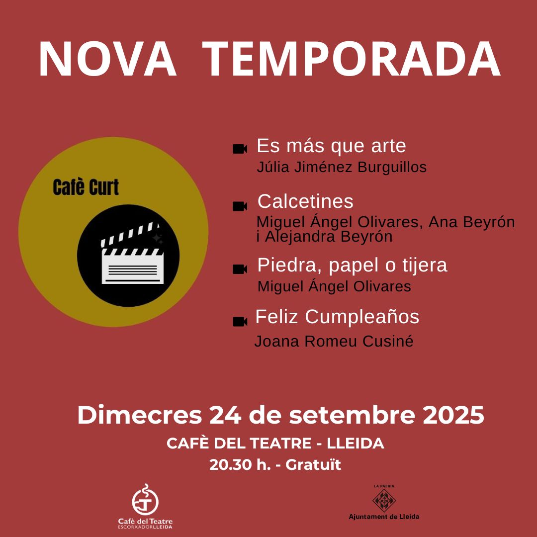 - El Cafè Curt és una cita mensual imprescindible per als amants del curtmetratge. Cada darrer dimecres de mes, el Cafè del Teatre de Lleida es converteix en un espai de projecció i trobada on es pot gaudir d’una selecció acurada de curts relacionats amb una temàtica especial.