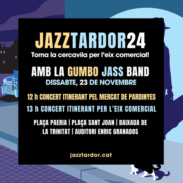 Cercavila Jazztardor'24 per l’eix comercial de Lleida i pel Mercat de Pardinyes amb la Gumbo Jass el 23 de novembre a partir de les 12 h.