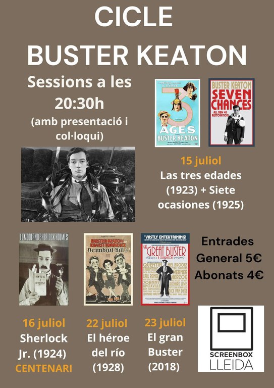 Amb motiu del centenari d'un film clau de l'slapstick i del cinema d'avantguarda dels anys 20 com "Sherlock.Jr", rendim homenatge al seu creador, cineasta i actor: en Buster Keaton. Una petita tria dels seus millors films; amb un tancament a l'alçada amb la projecció del documental "El gran Buster", d'en Peter Bogdanovich. LES SESSIONS INCLOUEN PRESENTACIÓ I COL·LOQUI POSTERIOR.