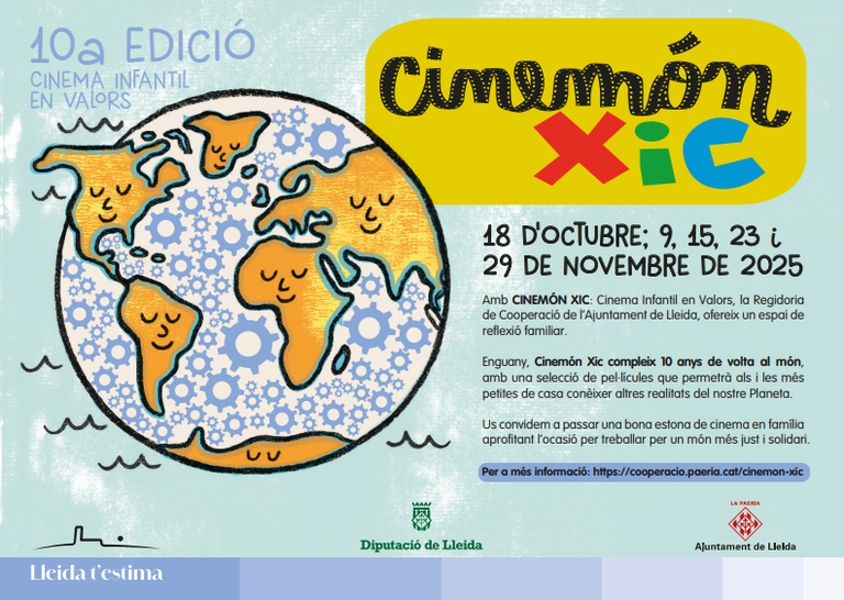 - La 10a edició de Cinemón Xic arriba a Lleida amb noves propostes de cinema infantil amb valors. Les sessions se celebraran els dies 18 d'octubre, 9, 15, 23 i 29 de novembre del 2025, amb curtmetratges i llargmetratges així com activitats per a diferents edats. Un cicle que promou la solidaritat, el respecte i la cura del planeta. Cinemón Xic tindrà lloc al Teatre de l'Escorxador i al Teatre de la Llotja.