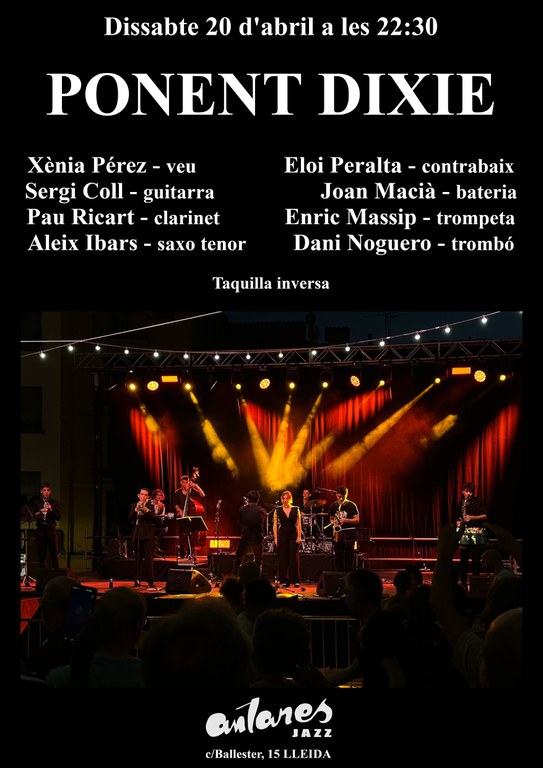 La Ponent Dixie torna a l'Antares per oferir una mostra de hot jazz mesclant a més a més diverses influències. Es fonamenta en la música popular de Nova Orleans dels anys vint i trenta i centren el seu espectacle en una revisitació d'estàndards clàssics fugint dels formalismes i amb l'objectiu de fer un producte ballable i alegre.
