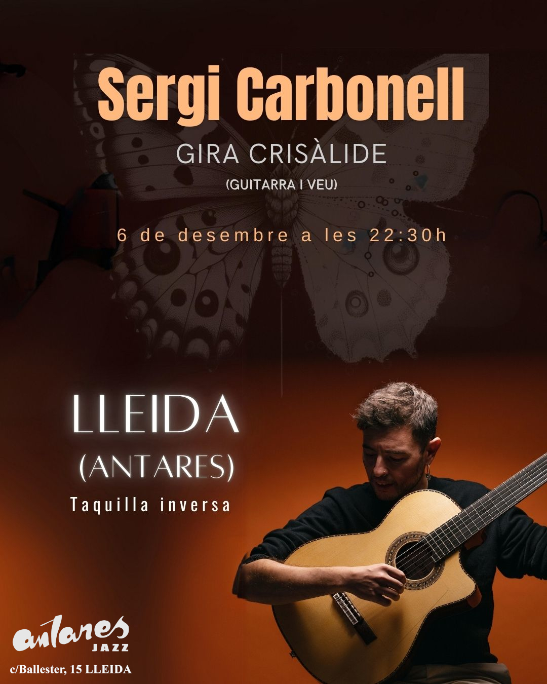 Dins de la gira Crisàlide el cofundador i un dels compositors de Txarango, Sergi Carbonell, continua construint tot un univers poètic amb el seu projecte en solitari. Una aposta per la sensibilitat i la poesia amb repertori ple d’emocionants cançons que nota a nota es transformen en un cosmos tant personal com sublim, que combina alegria en el seu format bandautor i la total tendresa en els seus formats íntims. Després de sorprendre el públic amb el seu debut Refugi (2023) i l’EP Crisàlide (2024), els quals li van valer la portada a la revista Enderrock i un Premi Climent Guitart, aquesta temporada Sergi Carbonell ens obre la porta a nous racons del seu univers amb un nou disc i una nova gira pels principals teatres, auditoris i festivals dels Països Catalans. Un espectacle refinat que captivarà el cor de tots els amants de la música i de la vida.