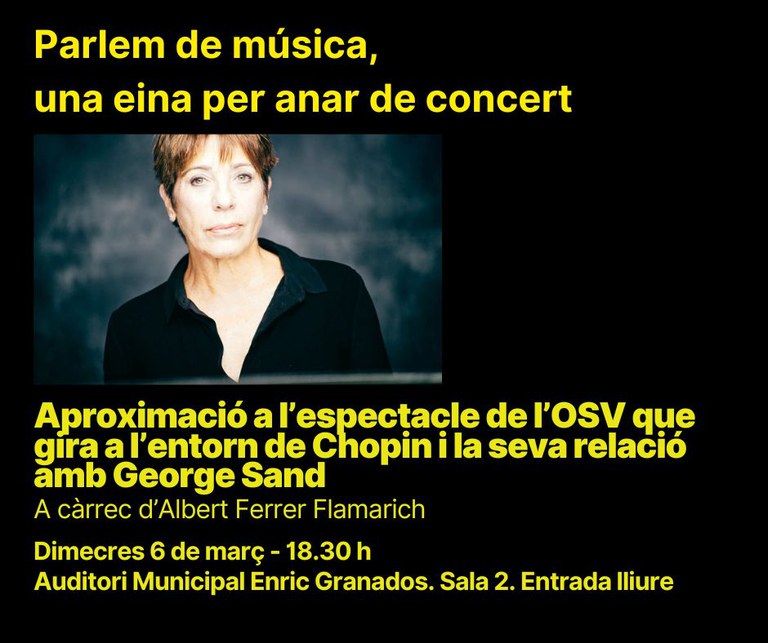 - Conferència - Aproximació a l’espectacle que l'Orquestra Simfònica del Vallès ens oferirà el 9/02 a l'Auditori i que gira a l’entorn de Chopin i la seva relació amb George Sand mitjançant la seva correspondència.
