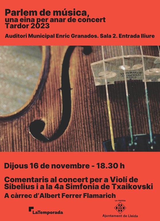 - Conferència "Concert per a violí de Sibelius, simfonia núm. 4 Txaikovski" a càrrec d'Albert Ferrer Flamarich