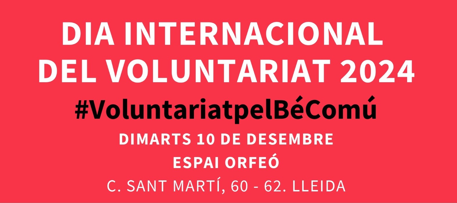 El dimarts 10 de desembre la ciutat de Lleida agafarà el torn per celebrar el Dia Internacional del Voluntariat. El tret de sortida es farà amb el lliurament de la categoria local del Premi Lluís Martí al Valor Socioambiental. Seguidament, se celebrarà una conferència a càrrec del president de la FCVS, Ramon Nicolau.