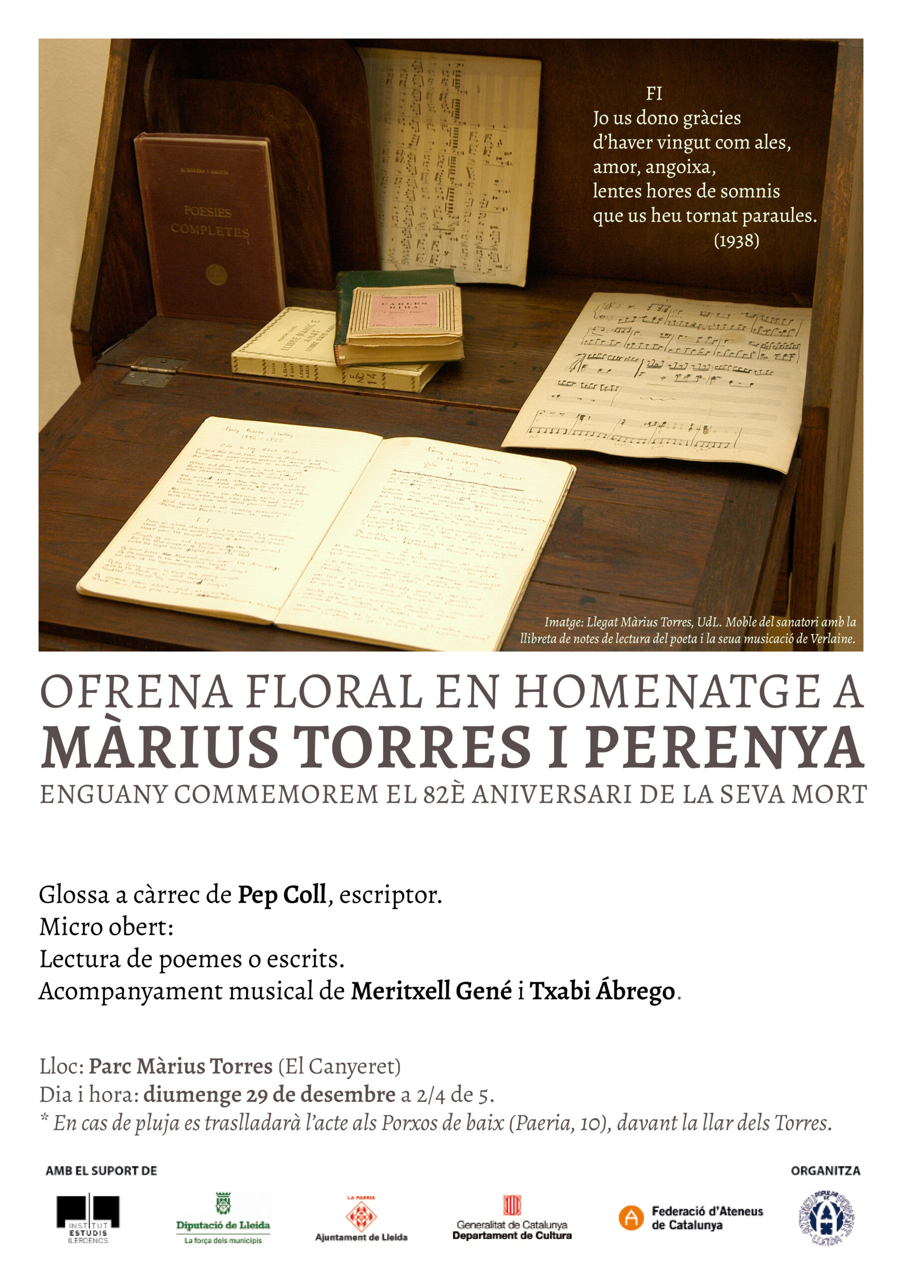 - Homenatge a Màrius Torres i ofrena floral en el 82è aniversari de la seva mort