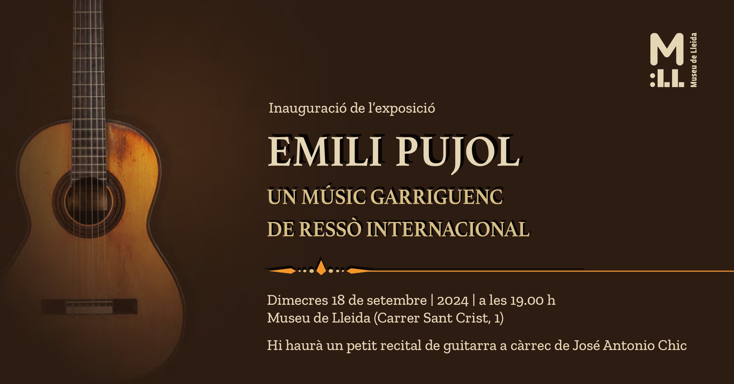 Inauguració de l'exposició "Emili Pujol, un músic garriguenc de ressò internacional" dimecres 18 de setembre a les 19 h al Museu de Lleida. Hi haurà un petit recital de guitarra a càrrec de José Antonio Chic.