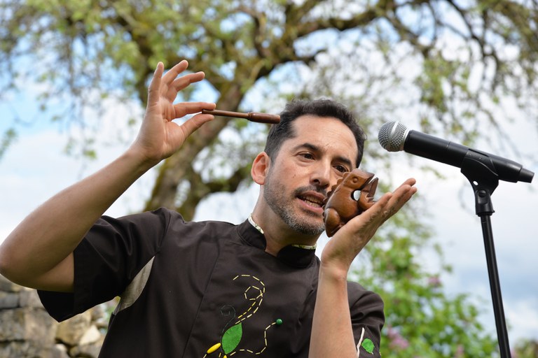 iTo és un personatge apassionat pels sons del món sencer. Ens convida al seu jardí musical, on el que més li agrada és fer escoltar i alimentar la imaginació. Juga amb tot el seu cos com si fos un instrument i ens submergeix en un viatge sonor per les ribes d’Àsia, Àfrica, Amèrica del Sud i Europa. Sentirem gongs javanesos, xinesos i tibetans, la Sanza, el charango, cançons multilingües i còmplices animals dotats de sons sorprenents...