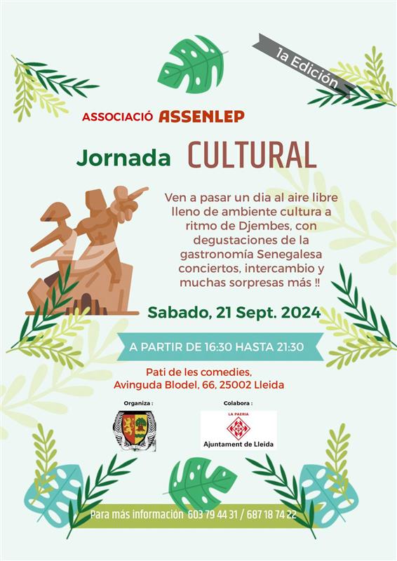 - Jornada cultural senegalesa amb ritmes de Djembes i degustacions senegaleses, entre d'altres sorpreses durant la tarda. Un espai de coneixença i intercanvis culturals de la nostra ciutat, obert a tots els públics. Lloc: Pati de les Comèdies, dissabte 21 de setembre de 16:30h a 21:30h.