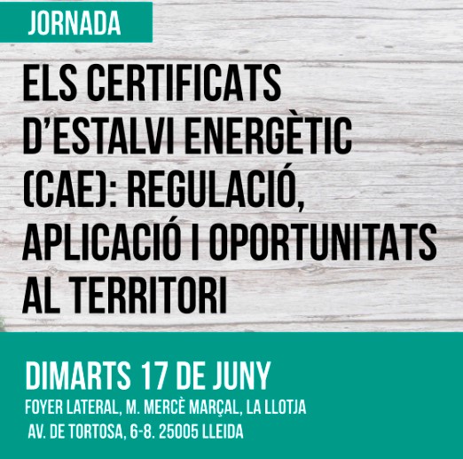 - Jornada. Els certificats d'estalvi energètic (CAE): Regulació, aplicació i oportunitats al territori