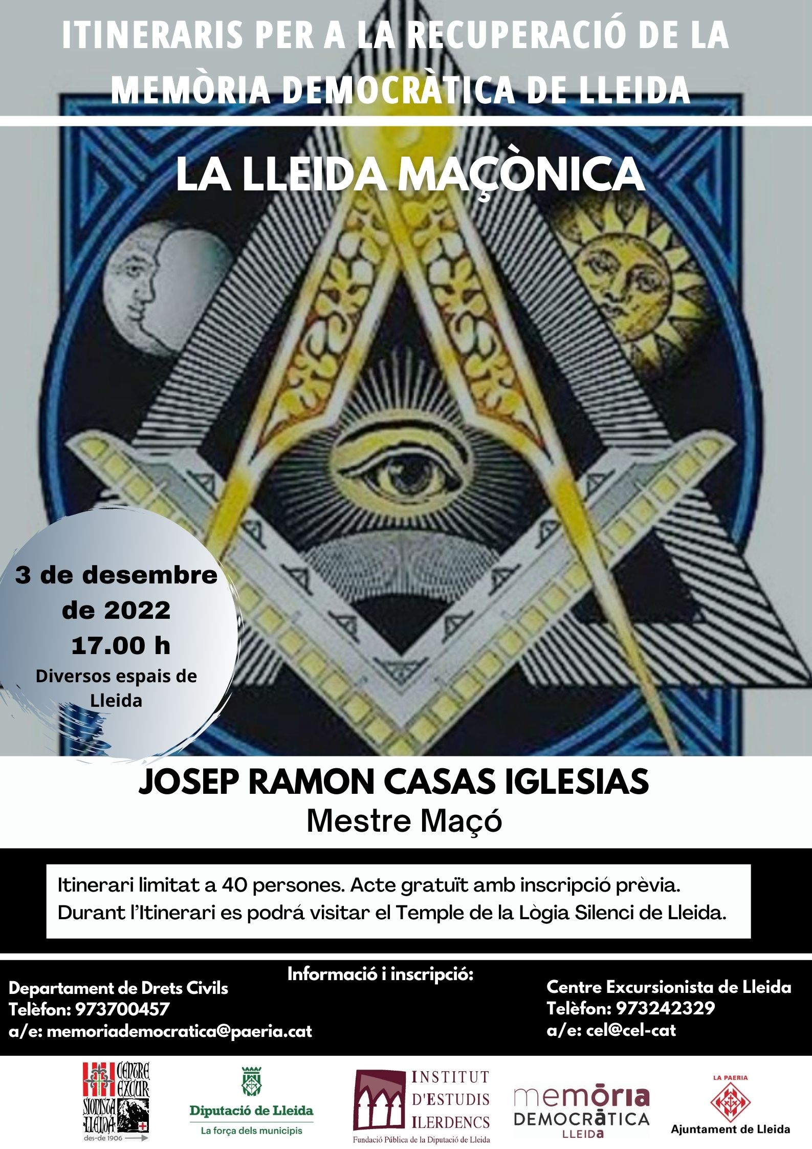 Segon recorregut de l’Itinerari per a la Recuperació de la Memòria Democràtica “La Lleida maçònica”.