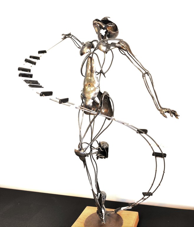Aquesta és la nova col·lecció d’escultures amb ferro, hacer i fusta de Miguel Ángel González. Una col·lecció dotada d' una extraordinària sensibilitat, bellesa i magnetisme visual. Un conjunt d’escultures al voltant de la música, plenes d'humanitat, dimensionalitat i harmonia.