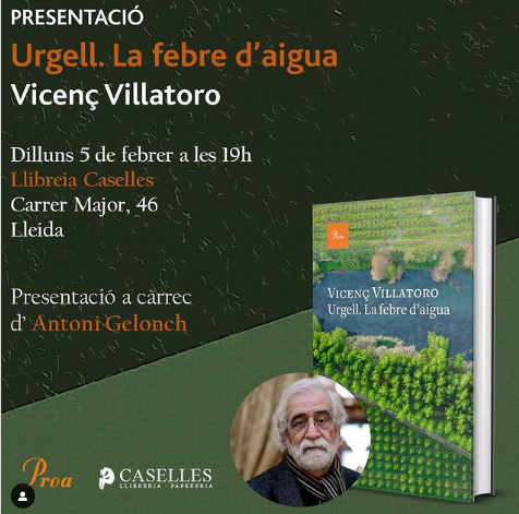 Presentació del llibre “Urgell. La febre d’aigua” d’en Vicenç Villatoro a càrrec d’Antoni Gelonch.