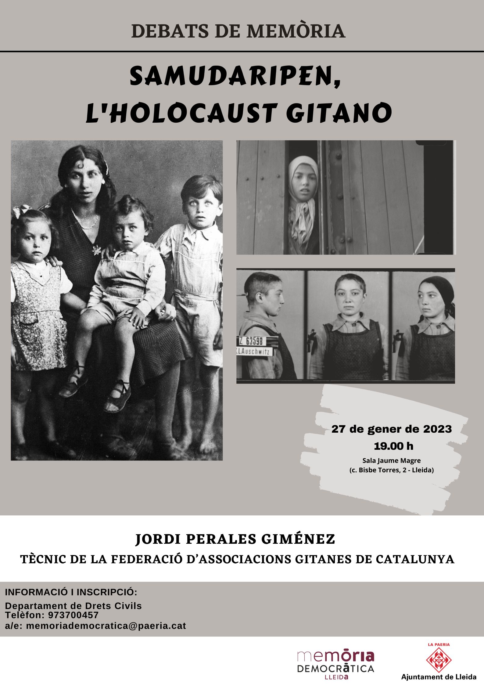 - DEBATS DE MEMÒRIA. Dins del marc d’activitats de commemoració del Dia Internacional en Memòria de les Víctimes de l’Holocaust, es celebra la conferència “Samudaripen, l’Holocaust gitano”. Aquesta anirà a càrrec del Jordi Perales Giménez.