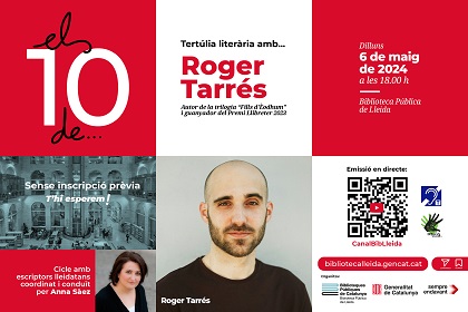 "Els 10 de Roger Tarrés". Tertúlia literària amb l’autor de la trilogia “Fills d’Èodhum” i guanyador del Premi Llibreter 2023, coordinada i conduïda per Anna Sàez. Amb interpretació a la llengua de signes a càrrec de Deixa'ns signar.
