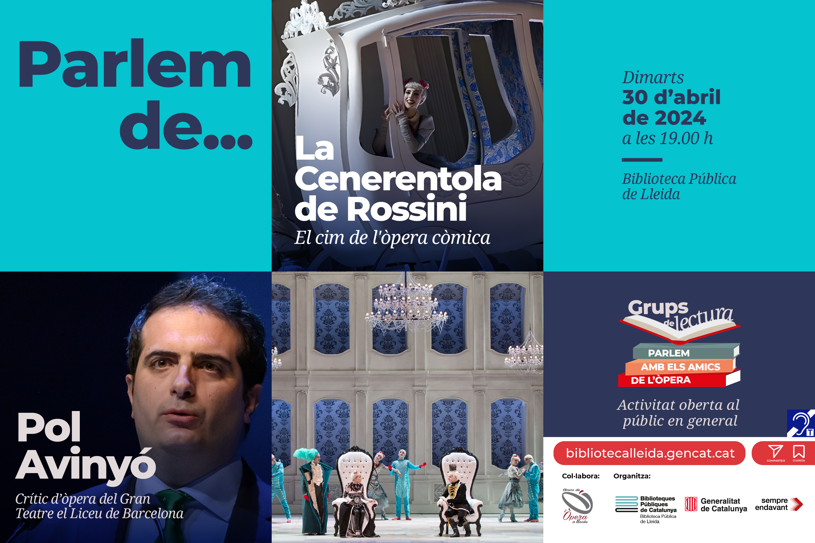 “La Cenerentola” de Rossini, el cim de l'òpera còmica. Xerrada a càrrec de Pol Avinyó, crític d’òpera del Gran Teatre el Liceu de Barcelona. Activitat en el marc de la programació del grup de lectura Parlem d’òpera oberta al públic en general.