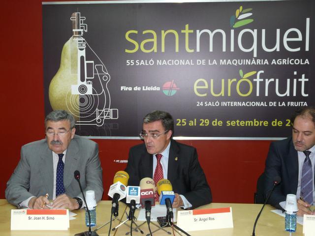 La 55a edició de la Fira Agrària de Sant Miquel i la 24a edició d'Eurofruit (Saló Internacional del Sector de la Fruita) han tancat avui les portes “superant un any difícil amb un balanç positiu”, segons ha manifestat Àngel Ros, alcalde de Lleida i president del Patronat de la Fundació Fira de Lleida. Ros ha dit que “el nivell de satisfacció d’expositors i visitants és alt, considerant la situació econòmica actual” i ha destacat l’èxit de participació en les activitats tècniques desenvolupades en el marc de la fira”, amb un total de 5.583 participants (un 40% més que en l’edició del 2008).