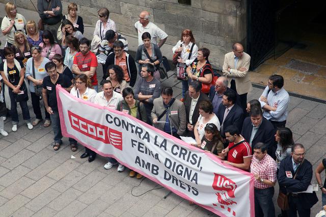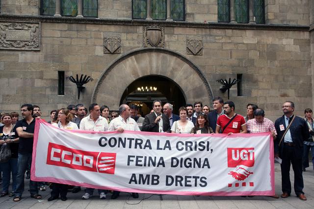 El tinent d'alcalde Josep Presseguer ha presidit la lectura del manifest Contra la crisi "Feina digna i amb drets" que han organitzat els sindicats Comissions Obreres i UGT coincidint amb la celebració de la Jornada Mundial pel Treball Digne. Presseguer ha demanat diàleg social entre els governs, les empreses i els treballadors i treballadores. S'adjunta arxiu de so de Josep Presseguer