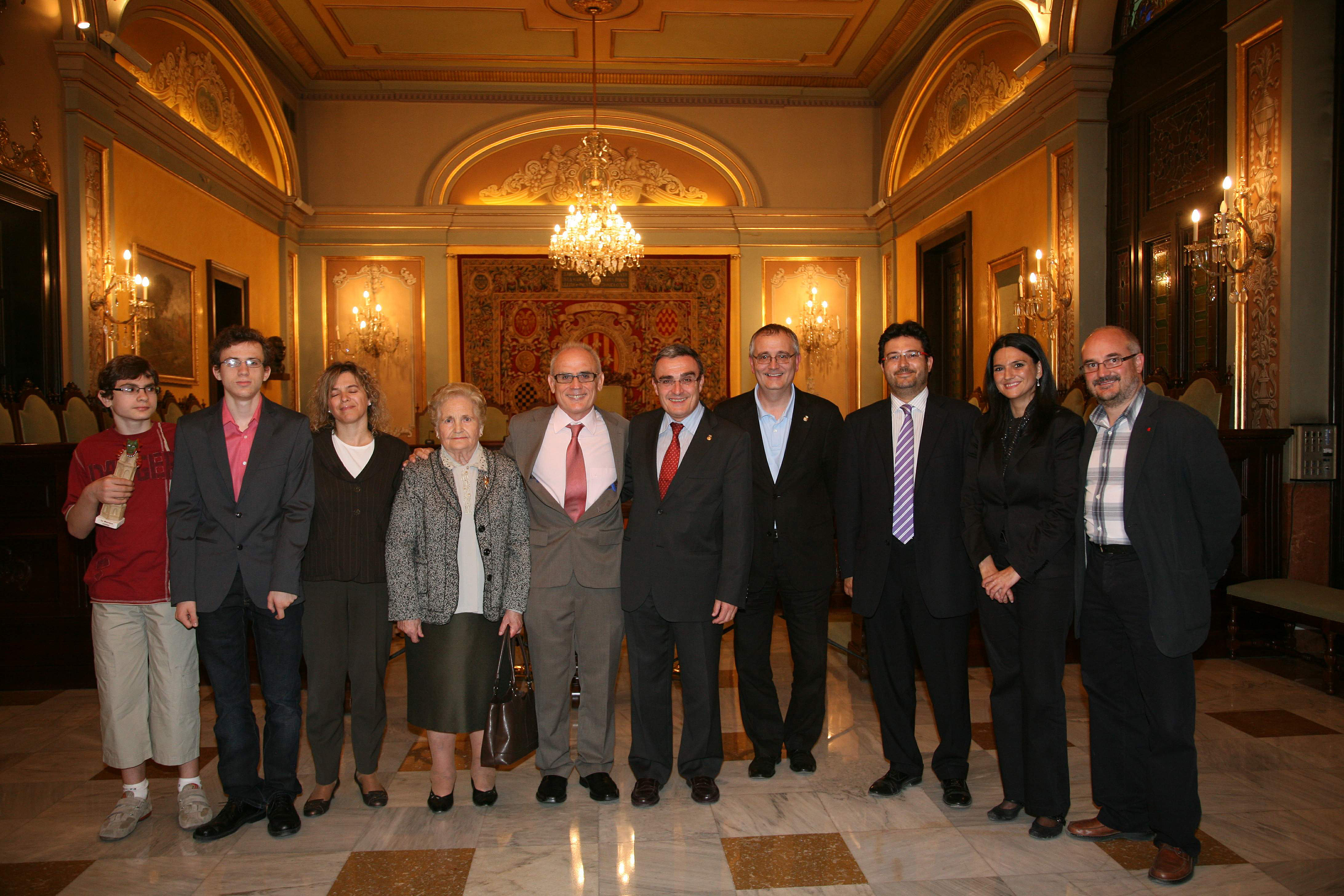 El professor Anicet Cosialls, ha estat acompanyat per la seva família en la recepció oficial al Palau de la Paeria. També hi han assistit el regidor d'Educació Jesús Castillo i els portaveus de CiU, Isidre Gavin, el PP, M.José Horcajada i IC-V, Ramon Camats.