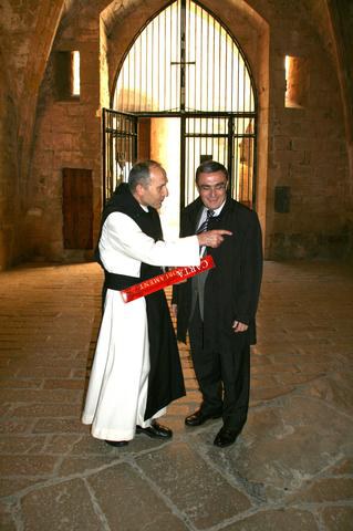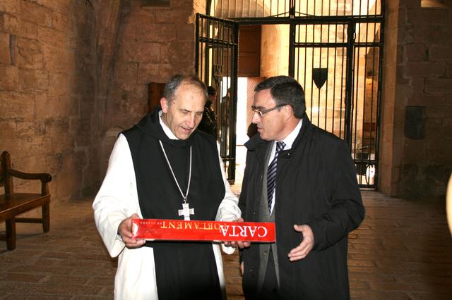 Àngel Ros entrega a l'Abad del Monestir de Poblet una reproducció de la Carta de Població de Lleida