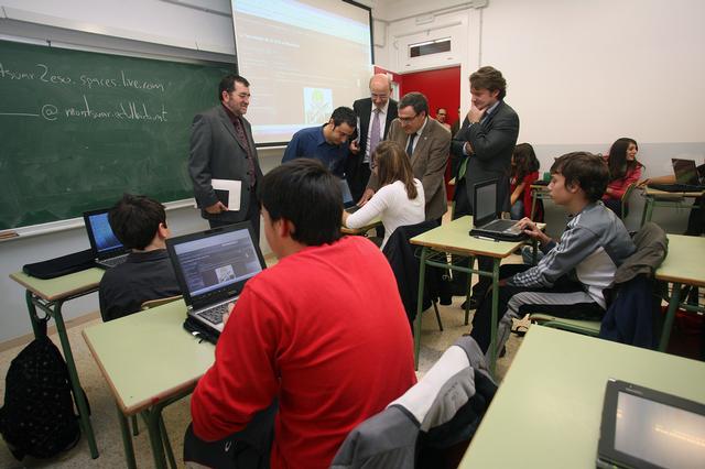 L’Ajuntament de Lleida, Microsoft i Toshiba han presentat juntament amb el Departament d’Educació de la Generalitat de Catalunya i Grup Santillana, els avenços de l’innovador projecte d’aules digitals amb Tablet PC que s’està desenvolupament en instituts de la ciutat de Lleida des de principis del curs 2009-10. Aquesta iniciativa s’inscriu en el pla de digitalizació dels aules Educat1x1 que el Departament d’Educació de la Generalitat ha posat en marxa a 200 centres de secundària catalans, amb la característica que els alumnes disposen de Tablets PC i no de Netbooks, així com la utilització de xarxes socials. L’Institut d’Educació Secundària (IES) Manuel de Montsuar de Lleida ha estat l’amfitrió d’una roda de premsa on s’han ofert detalls de com l’acord signat el passat mes de febrer entre Steve Ballmer, president de Microsoft, i el Govern de la Generalitat per impulsar les Tecnologies de la Informació i les Comunicacions (TIC) en l'entorn educatiu, s'ha convertit en una realitat a Lleida. Els assistents han pogut visitar una de les aules experimentals i veure in situ com alumnes i professors duen a terme una classe realitzant un ús intensiu i personalitzat d'ordinadors amb pantalla tàctil totalment connectats. L'objectiu d'aquest projecte pilot, inscrit en el programa Educat 1x1, però que en aquest cas compta amb la tecnologia de Microsoft i Toshiba, i que a Lleida ciutat segueixen 90 alumnes de 2n d’ESO de dos instituts de secundària, és l'aplicació integral de les noves tecnologies en la docència. En l'acte han estat presents Àngel Ros, alcalde de Lleida; Jaume Graells, Director General de l’Educació Bàsica i el Batxillerat del Departament d’Ensenyament de la Generalitat de Catalunya; Antonio López, director dels SSTT d’Ensenyament a Lleida; Ramón Óscar Torrelles, director de l'Institut Manuel de Montsuar; Jesús Castillo, regidor d'Educació i director de l’IES Guindàvols; Alberto Ruano, director general de Toshiba Espanya; Pablo Romero, director de màrqueting de Toshiba Espanya; Carles Grau, director general de Microsoft a Catalunya; Fernando Martín, Director d'Educació de Microsoft Ibèric i Marta Bonet, Responsable de continguts digitals del Grup Santillana. L'alcalde de Lleida, Àngel Ros, ha destacat en la seva intervenció que l'experiència és un exemple d'educar innovant i que l'extensió d'aquest programa a les aules és una eina de competitivitat. Així mateix, l'alcalde ha refermat l'aposta decidida de la ciutat de Lleida tant per l'educació "és lògic que un ajuntament aposti per l'educació, si s'aposta pel futur, una ciutat ha d'apostar per l'educació com a eina de competitivitat". Arxiu de so Àngel Ros1 Ros ha remarcat la vocació de la ciutat de Lleida per ser ciutat digital i ciutat educadora i ha donat a conèixer les xifres comparatives que demostren que Lleida és al capdavant en l'ús de les TIC respecte a la resta de Catalunya. Arxiu de so Àngel Ros2 Per la seva banda, el director general de Microsoft a Catalunya, Carles Grau ha destacat el caràcter capdavanter de Lleida en l'aplicació de la tecnologia a l'educació, amb l'experiència que es presenta avui i també en l'ús de tecnologia a l'Escola Bressol "probablament sigui Lleida de les primeres ciutats en el sud d'Europa en aplicar aquesta tecnologia". Així mateix, Grau ha explicat que la voluntat de les aules digitals és també reduir el fracàs escolar i millorar els resultats dels alumnes i ja s'ha demostrat en experiències a altres punts d'Espanya i en altres nivells educatius que el fracàs escolar baixa entre un 20% i un 30% amb l'us d'aquestes tecnologies. Arxiu de veu Carles Grau Jaume Graells, de la seva banda, Director General de l'Educació Bàsica i Batxillerat de la Generalitat, ha destacat la bona acollida del projecte i ha explicat que l'objectiu és que es pugui estendre a tots els centres de secundària públics i concertats de Lleida el proper curs. Arxiu de so Jaume Graells L'origen del projecte El 16 de febrer de 2009 el Departament d'Educació de la Generalitat i Microsoft Ibèrica van signar un conveni per ampliar una col•laboració que ja es venia desenvolupant tres anys abans, orientada a la millora de la qualitat de l'educació a partir d'experiències basades en l'aplicació de les TIC. En aquest acord s'establia desenvolupar en almenys un centre de la ciutat de Lleida dependent del Departament d'Educació, la utilització intensiva de Tablet PC portàtils per part d'alumnes i professors. Lleida va ser la ciutat escollida per dur a terme aquest projecte pilot en reconeixement a la seva vocació per l'impuls de les noves tecnologies en el sector de l'educació, (46 alumnes de l'Escola Bressol Cappont de Lleida ja utilitzen el sistema de Tablet PC) així com en l'àmbit ciutadà. A la ciutat de Lleida un 72,4% de les llars tenen connexió a Internet i existeix una àmplia xarxa de telecentres en tot el municipi d'accés gratuït per als ciutadans i ciutadanes. Només uns mesos després d'aquell acord, el projecte pilot ja es troba en marxa en dos centres de la ciutat: l'Institut Manuel de Montsuar i l'Institut Guindàvols. L'equipament tecnològic de les aules pilot està en els centres des del juny de 2009 i s'ha començat a utilitzar des de setembre del curs 2009-2010. La seva utilització ha estat creixent des de setembre fins al dia d'avui, que ja és completa en les matèries implicades en el pilotatge. 90 alumnes de 2n d'ESO participen en aquest projecte pioner a la ciutat de Lleida L'Institut Manuel de Montsuar està seguint l'experiència a través de dos grups de 2n d'ESO (60 estudiants i dos professors) en les matèries de Ciències Naturals i Tecnologia, encara que uns altres professors i unes altres matèries d'aquest nivell, estan utilitzant també el material. L'Institut Guindàvols hi participa a través d'un grup de 2n d'ESO (30 estudiants i dos professors) en les matèries de Ciències Natur
