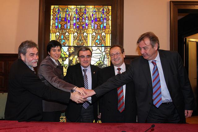 L’alcalde de Lleida, Àngel Ros, i Eduard Spagnolo de la Torre i Salvador Soler, en nom de Clínica Terres de Ponent, S.L. i Quintàlia Agrupació S.L, respectivament, han formalitzat l’escriptura per la qual l’Ajuntament de Lleida cedeix un solar de 14.320,50 metres quadrats qualificat d’equipament situat a la partida de Copa d’Or de Cappont, on s’edificarà la nova clínica de l’Aliança. A canvi, la Paeria rep l’edifici de l’actual seu de Prat de la Riba, 79-81, un immoble amb una superfície construïda de 6.041 metres quadrats, i els baixos del número 5 del passatge La Premsa, on actualment l’Aliança té uns consultoris mèdics.