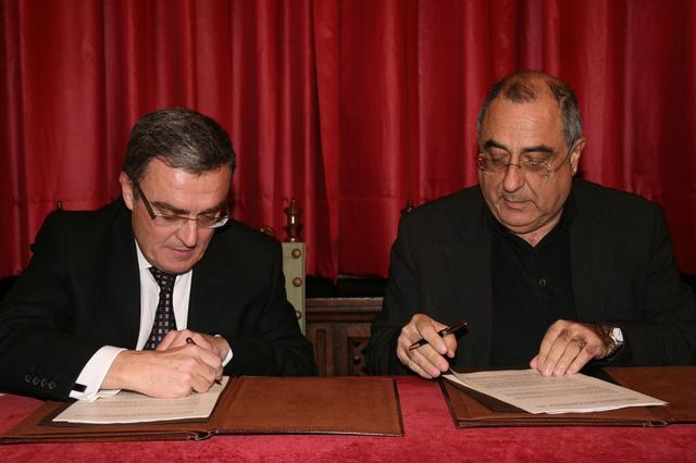 El conseller de Política Territorial, Joaquim Nadal, i l’alcalde de Lleida, Àngel Ros, han signat aquest dijous el conveni per al desenvolupament del tercer pla de barris que es durà a terme a la ciutat