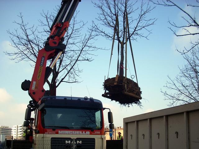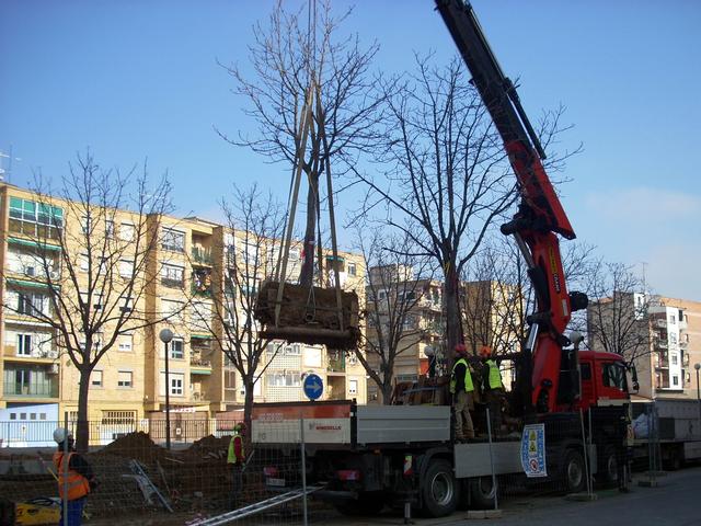 L’Ajuntament de Lleida ha trasplantat cinc arbres que estaven ubicats al tram comprès entre el carrer Corts Catalanes i la plaça Europa, en el marc de les obres d’urbanització complementàries al parc del cobriment de les vies.