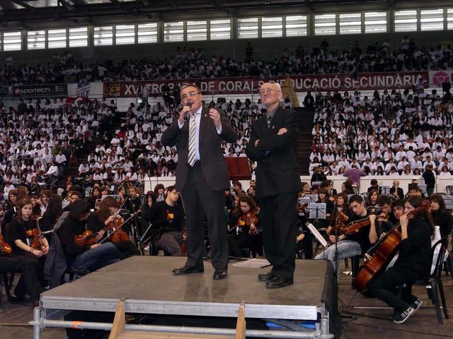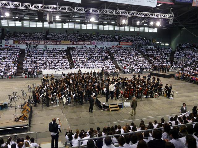 El concert ha arrencat amb l'actuació de Lax’N’Busto. Després, totes les Corals participants han interpretat el Brindis de la Traviata (G. Verdi), Lleida (Ll. Payà), Llença't (amb Lax'N'Busto), Els Segadors–Himne Nacional de Catalunya (Text: E. Guanyavents) i El cant de la trobada (Text: J. Prats. Música: C. Sotelo), acompanyades de l’Orquestra Simfònica del Conservatori Municipal de Lleida i dels grups instrumentals dels centres d’educació secundària Isaac Albéniz de Badalona, Fort Pius de Barcelona, la Salle Mollerussa, Antoni de Martí Franquès de Tarragona, Rafael de Casanovas de Sant Boi de Llobregat, Auró de Santpedor i Joaquim Bau de Tortosa. Finalment, tots els professors, voluntaris i autoritats han fet una rotllana a la pista del Barris Nord i s'ha interpretat L'hora dels adéus com a comiat del comcert.