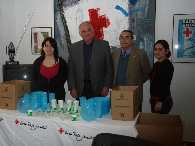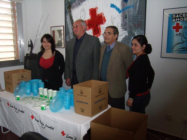 El regidor d’horta i medi ambient,  Josep Barberà, ha lliurat aquest matí papereres selectives de paper (62 unitats grans i petites), vaixella compostable (1500 jocs de coberts i 1500 tasses de café) i vaixella reutilitzable (100 plats i 50 gots) a Creu Roja Lleida.