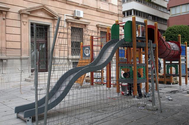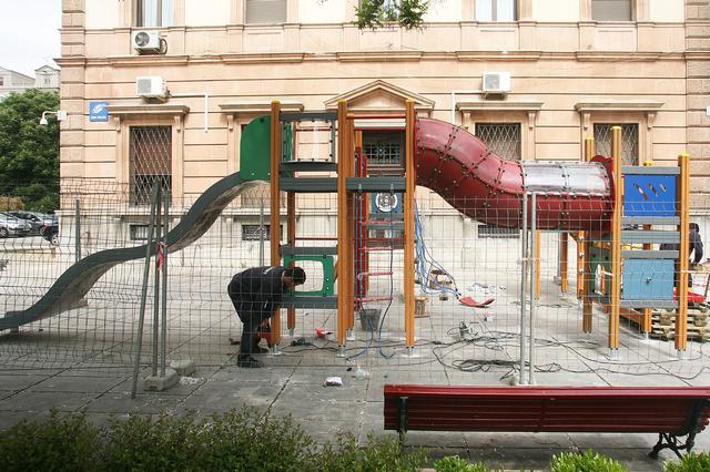 La Paeria està instal·lant jocs infantils a la plaça de la Pau, un cop s’ha reurbanitzat tot l’àmbit, les zones enjardinades i els serveis de la zona.