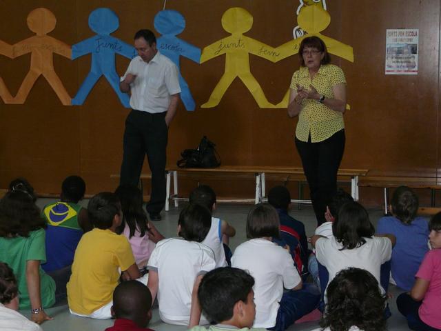 La regidora de Mobilitat, Via Pública i Seguretat, Sara Mestres, acompanyada del responsable d'Autobusos de Lleida, Carles Soldevilla, ha ofert aquest matí una xerrada als alumnes de primària del CEIP Pardinyes per informar-los de la targeta d'autobús gratuïta per als escolars de 4 a 12 anys, la T-12.
