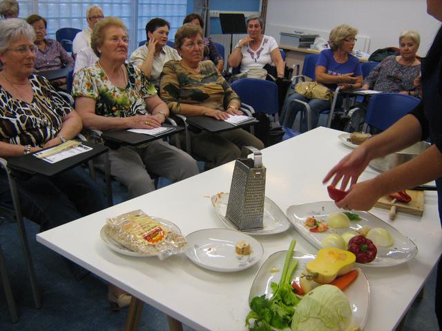 Una cinquantena de dones han participat aquest proppassat dimecres 6 d'octubre a la tarda en el taller d’Alimentació saludable, que va anar a càrrec d’Imma Peralta, experta en cuina vegetariana. L’objectiu d’aquesta sessió era convertir la cuina en un laboratori de salut, mitjançant la utilització d’aliments vius, rics en minerals i proteïnes i baixos en greix. A banda d’explicar les propietats nutritives i els beneficis per a la salut de diferents verdures i hortalisses, l’experta ha ofert una demostració culinària amb el seitan (proteïna vegetal del blat) com a principal ingredient. Al final de la sessió, totes les participants han pogut degustar, doncs, un plat habitual de la cuina vegetariana, seitan a la biscaïna. La segona part d’aquest taller dedicat a la cuina vegetariana tindrà lloc el proper 3 de novembre i estarà servirà per conèixer els beneficis de la soja i el tofu.
