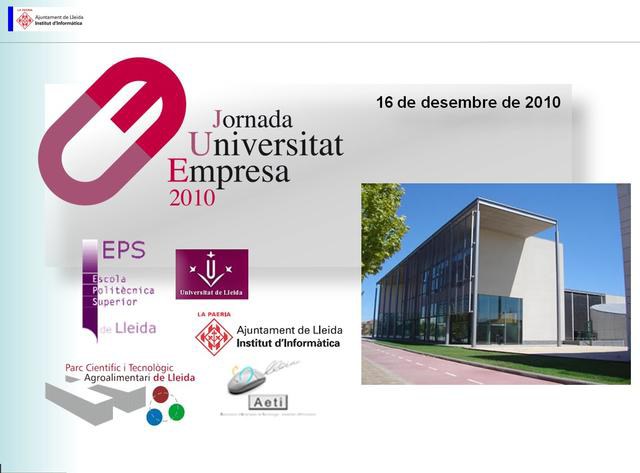 D'altra banda, en la trobada d'avui també s'ha informat de la propera celebraació de les Jornades TIC Universitat-Empresa, organitzades conjuntament per l’Institut Municipal d’Informàtica de l’Ajuntament de Lleida, l’Escola Politècnica Superior (EPS) de la UdL i AETI, la patronal del sector TIC . L’objectiu de la trobada, que tindrà lloc el 16 de desembre, és interrelacionar les empreses del sector de les TIC amb els estudiants, els grups de recerca, el professorat i l’Administració.