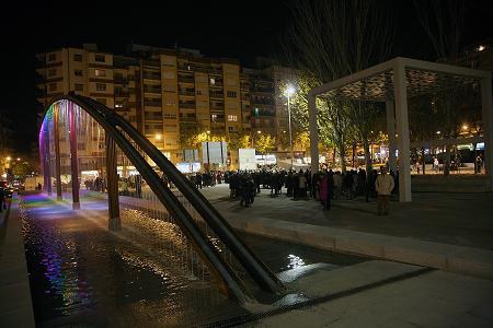 La nova il•luminació de l’arc de la font de la plaça està formada per 72 leds de diferents colors amb l’objectiu d’il•luminar la cortina d’aigua i poder programar fins a 18 circuits diferents amb variacions cromàtiques, ja que cada circuit de programació controla 4 leds.