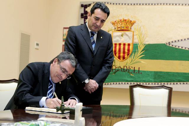 L’alcalde de Lleida, Àngel Ros, ha matingut aquest matí una reunió de treball amb l’alcalde de Sabadell, Manel Bustos, amb qui ha tractat prioritats comunes dels dos municipis, com ara el treball per l’ocupació i el desenvolupament del sòl industrial. L’alcalde de Lleida ha visitat oficialment l’Ajuntament de Sabadell i ha signat al Llibre d’Or de la ciutat.