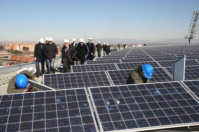 Aquest dimarts, l’alcalde de Lleida, Àngel Ros, acompanyat dels tinents d’alcalde Marta Camps i Txema Alonso, i del regidor de Medi Ambient, Josep Barberà, ha visitat el parc solar que l’Ajuntament de Lleida està instal·lant a la coberta de l’estadi del Camp d’Esports. Aquest sistema fotovoltaic, amb un total de 483 panells que estan connectats a la xarxa elèctrica, que produiran anualment l’energia que consumeixen 50 habitatges.