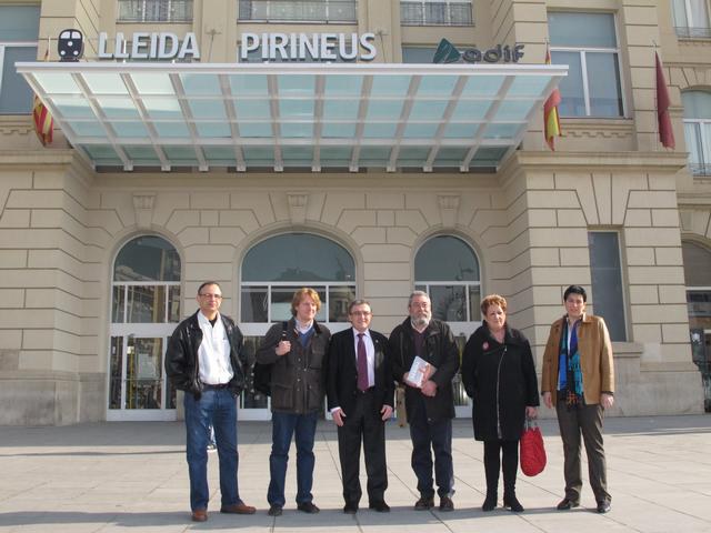 L’alcalde de Lleida i la tinenta d’alcalde Marta Camps han anat a l’estació de ferrocarril per rebre Méndez, qui ha arribat en AVE. La secretaria general del sindicat a Lleida, Rosa Palau, també hi ha anat per acompanyar-lo fins a Guissona.