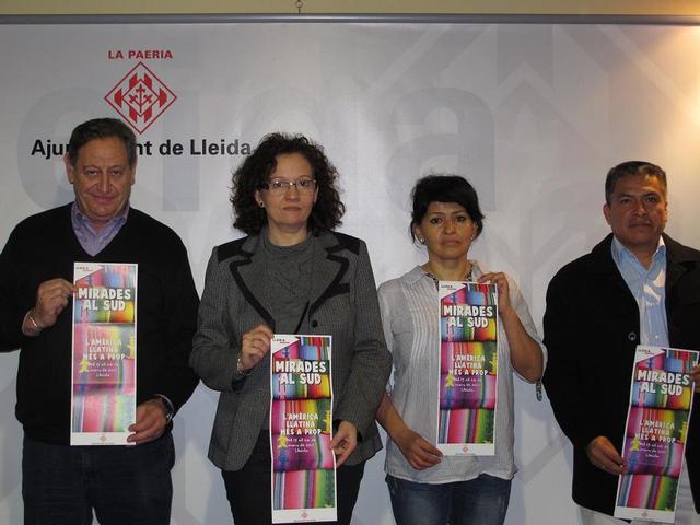 La cultura llatinoamericana surt al carrer des d'avui i fins el 26 de març per donar-se a conèixer a la ciutadania de Lleida a través del projecte “Mirades al Sud”. La regidora de Drets Civils, Cooperació i Immigració, M. Rosa Ball, ha presentat aquest matí la proposta que l’Ajuntament posa en marxa per segon any consecutiu amb l’objectiu de conèixer de més a prop les diferents cultures coexistents en la nostra comunitat. En aquesta segona edició “Mirades al sud” mostra la tasca que la Paeria i les entitats, ONGs, col·lectius llatinoamericans de la ciutat realitzen en matèria de cooperació i codesenvolupament a l’Amèrica Llatina.