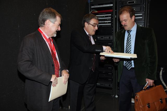 L’alcalde de Lleida saluda Manuel Campo Vidal, conferenciant a la OIDP