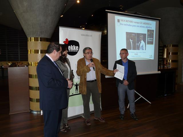 L’alcalde de Lleida, Àngel Ros, ha presidit la presentació del llibre “Mourinho versus Guardiola: dos métodos para un mismo objetivo”, que han escrit conjuntament Juan Carlos Cubeiro i Leonor Gallardo i que ha publicat Alienta Editorial.