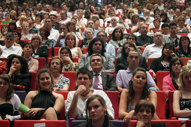 La sala Ricard Viñes de la Llotja s’ha omplert de gom a gom per acollir l’acte de lliurament d’orles acadèmiques de la XVII Promoció de les Diplomatures de Mestre i d’Educació Social, de la VIII Promoció de la Diplomatura de Treball Social i de la XV Promoció de la Llicenciatura de Psicopedagogia.