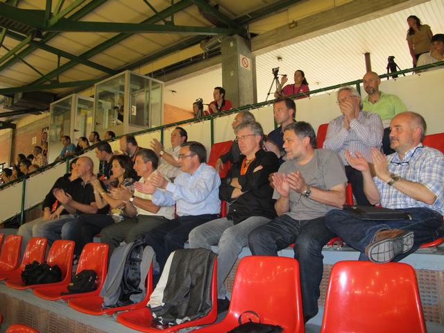 L’alcalde de Lleida, Àngel Ros, ha anat aquesta tarda al pavelló municipal Onze de Setembre per animar l’Associació Lleidatana d’handbol femení en el partit que el conjunt local ha jugat davant el BM Porriño (resultat: 28 a 29). Un cop finalitzada la segona jornada de la primera fase d’ascens a la Divisió d’Honor, que s’ha disputat aquest dissabte, el conjunt lleidatà continua encapçalant la classificació, amb 8 punts.