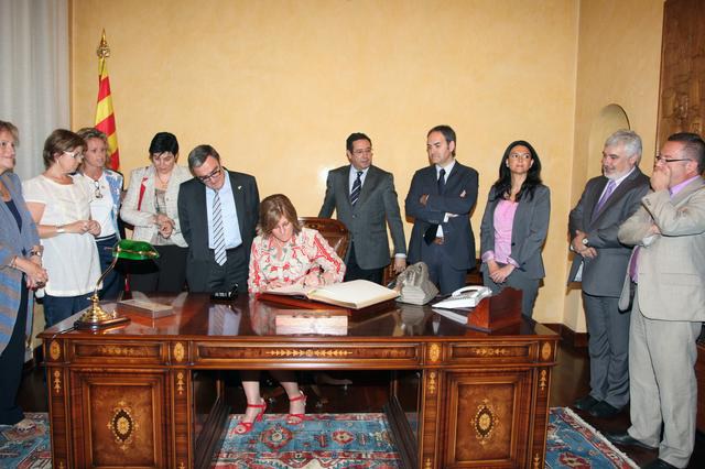 L'alcalde de Lleida, Àngel Ros, ha rebut avui la consellera de Justícia de la Generalitat, Pilar Fernández Bozal, que ha realitzat la seva primera visita institucional a l'Ajuntament de Lleida. A l'acte han assistit els portaveus municipals i regidors i regidores de la Corporació, així com el delegat de la Generalitat a Lleida, Ramon Farré. Pilar Fernández Bozal ha firmat el Llibre d'Or i ha visitat el saló de sessions on ha contemplat el Retaule de la Verge dels Paers i la Carta Pobla de la ciutat.