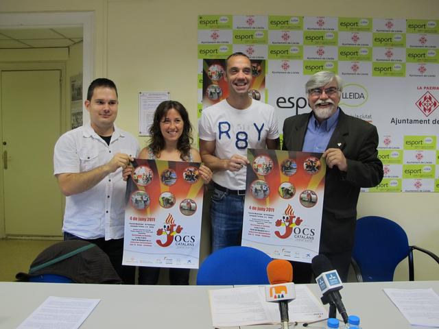 El tinent d’alcalde i responsable d’esports de l’Ajuntament de Lleida, Txema Alonso, acompanyat del President de la Federació Catalana d’Esports de Persones amb Discapacitat Física, Josep Giménez, i la coordinadora general de la delegació de Lleida, Silvia Dalmau, han presentat avui els IV Jocs Catalans d’Esport Adaptat.
