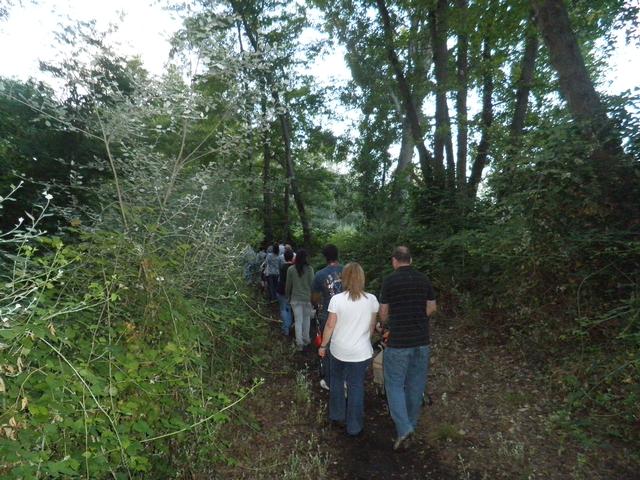 Els participants del taller han recorregut els camins de la Mitjana, acompanyats d’una tècnica de la regidoria, comentant les diferències de colors, sons i sensacions que es poden trobar si hom es passeja pel parc de dia o de nit.