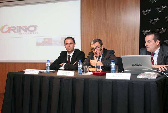 L’alcalde de Lleida, acompanyat del regidor d’Horta i Medi Ambient, Josep Barberà, el conseller delegat de Griñó Ecològic, Joan Griñó, i el director general de Griñó Ecològic, Ferran Iturbe, han participat aquest matí en la presentació a inversors de la Companyia Griñó Ecològic, que s’incorpora al Mercat Alternatiu Bursàtil (MAB).